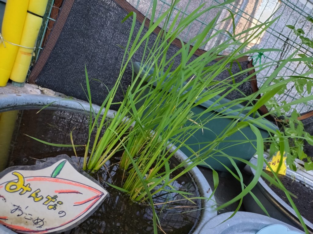 お米は、もみから育て、こんなに大きくなりました。収穫までできるかな?とワクワクしています。