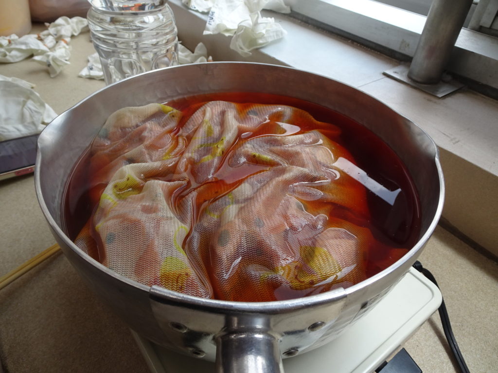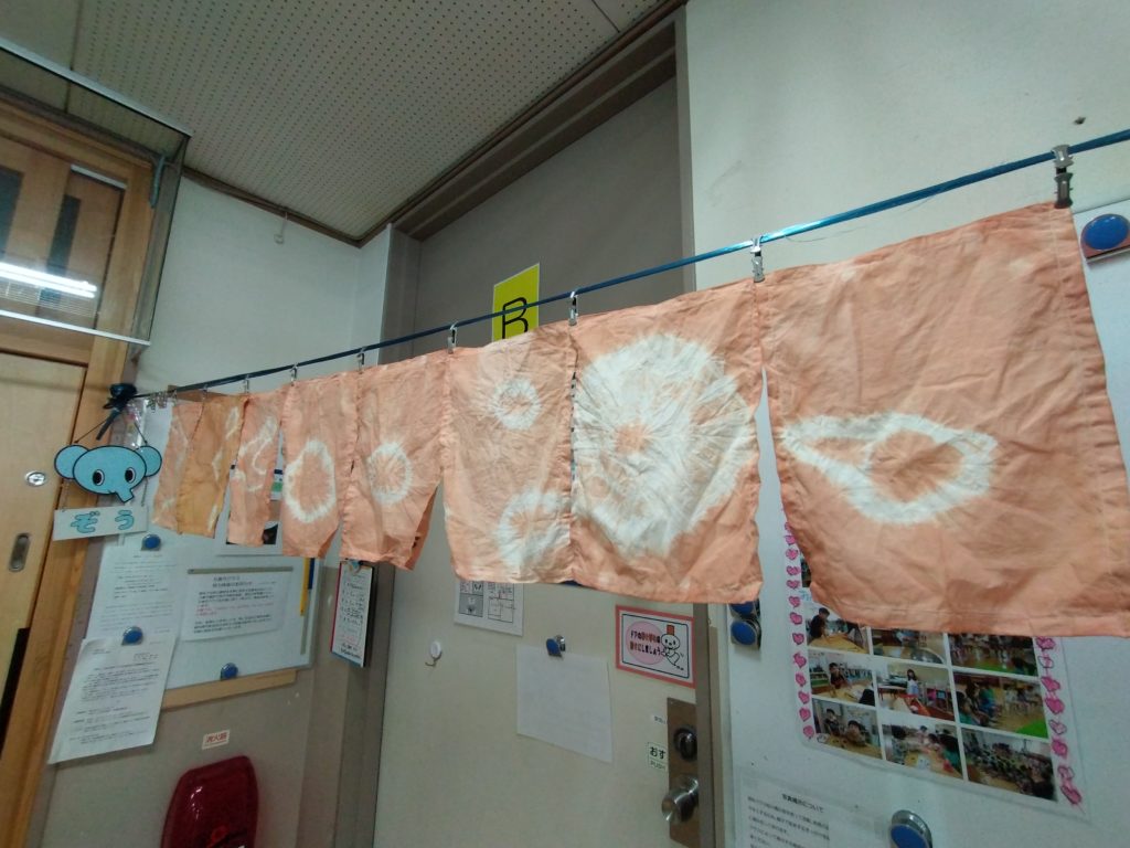 ちなみに、このカレーパーティーに使った年長ぐみのランチョンマットは玉ねぎ染めで作りました。