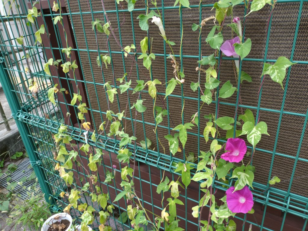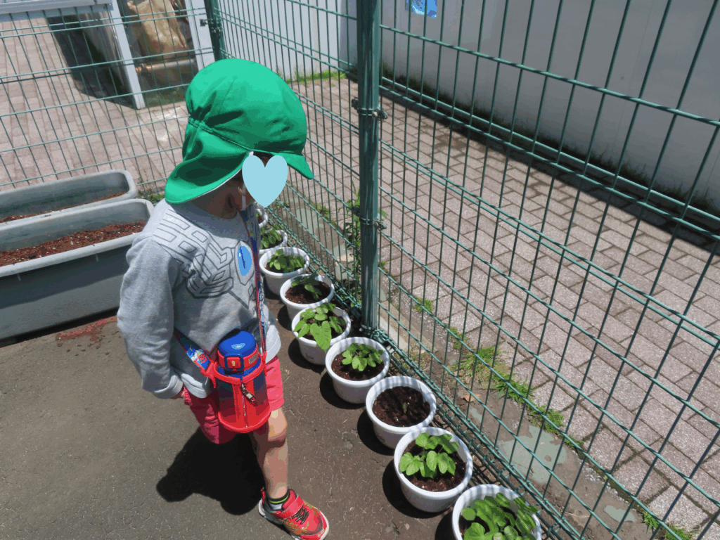 フェンスの近くには、朝顔を育てました。どんどん高くなり、8月には綺麗に咲いて、保育園を彩ってくれました。
