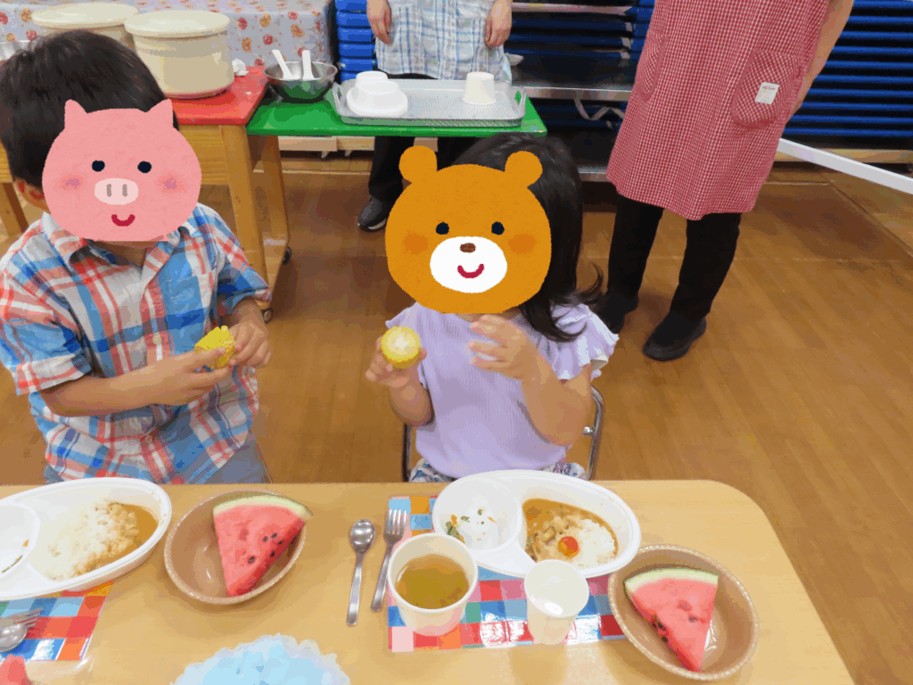保育園では、毎年夏にカレーパーティー🍛を行っています。