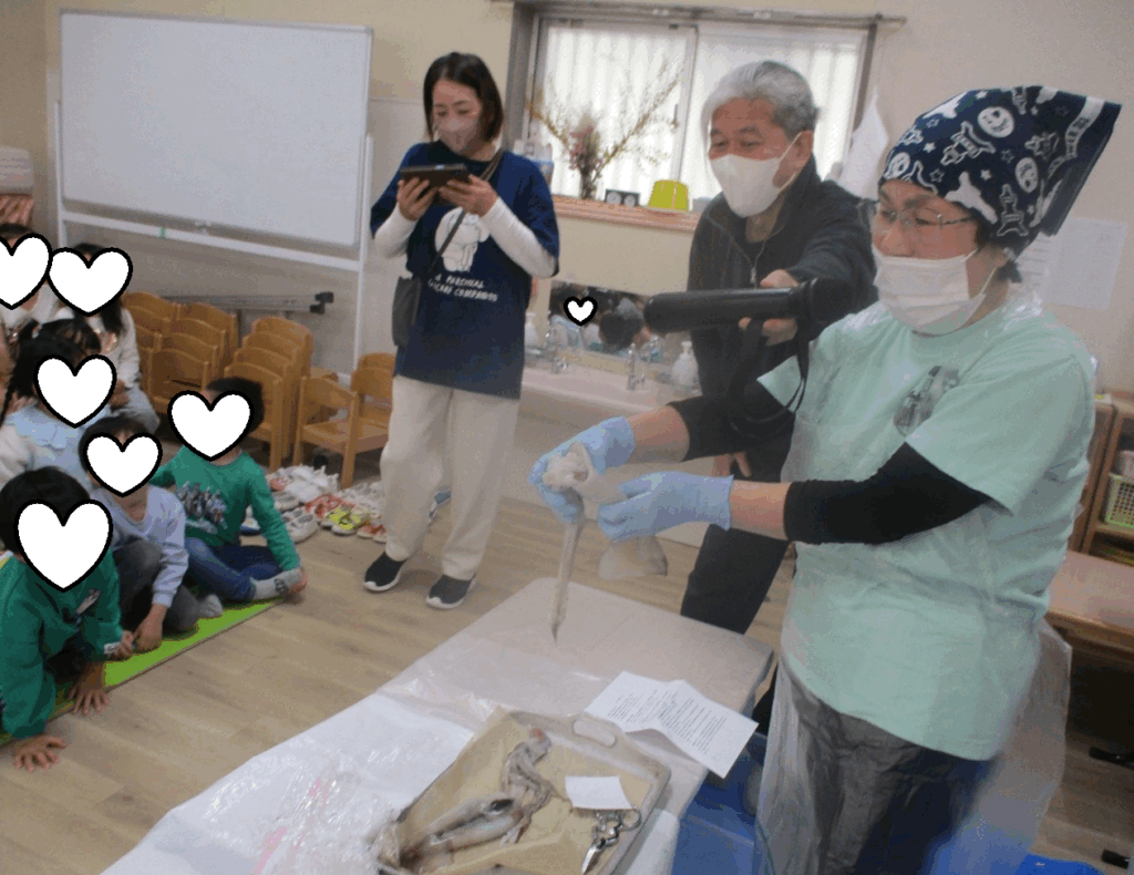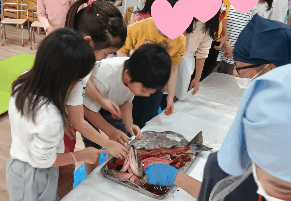 目や内臓を躊躇なく触る子もいれば、「くさい…」とにおいが気になって近づかない子もいました。